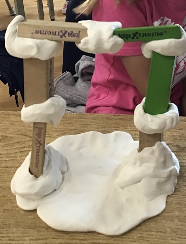 Another day, a STEM station offered modeling clay and small wooden pieces with the prompt:
